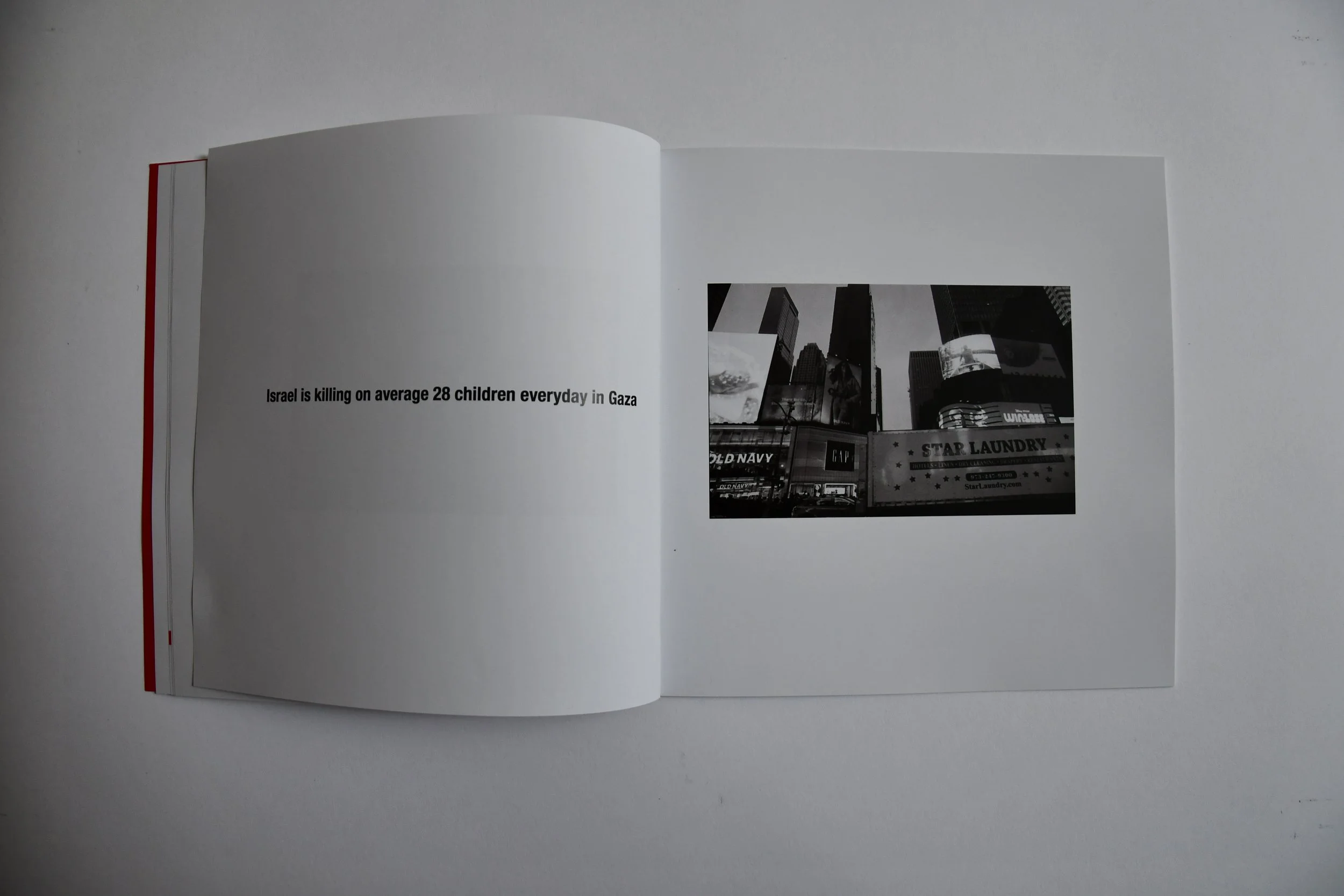 The Absurdity of War is a photo-text series examining America’s involvement in the Gaza genocide by placing news headlines and statistics alongside images that evoke everyday American life. This juxtaposition underscores the unsettling distance as well as the hidden connection between domestic comfort and foreign atrocity. The work calls on viewers to recognize the uneasy coexistence of privilege and violence, asking them to reconsider their complicity in narratives of war.